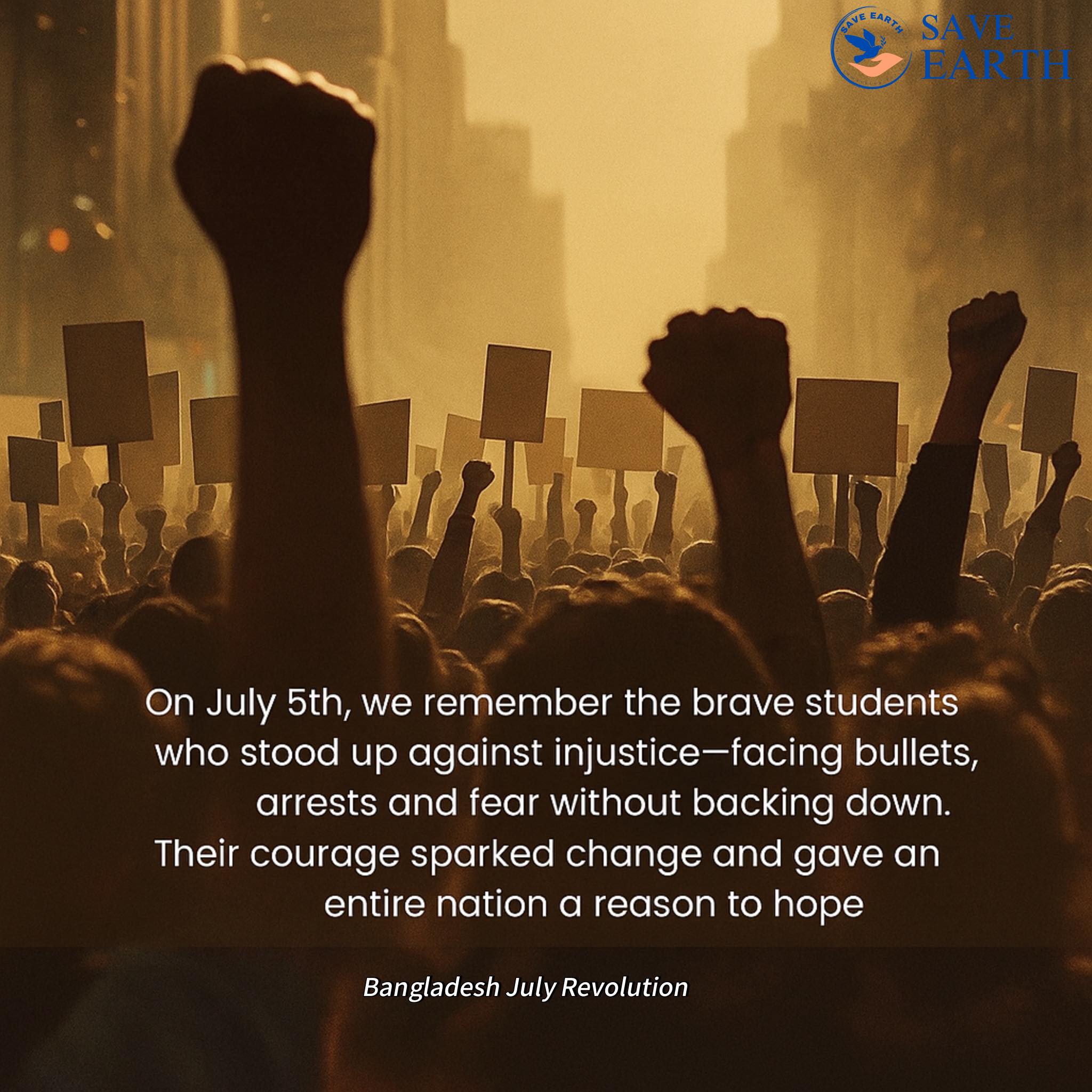 On July 5th, we honor the unwavering courage of the students who rose against injustice during the Bangladesh July Revolution. Their bold voices and relentless spirit in the face of fear, violence, and repression became a turning point in our nation's pursuit of justice and change.