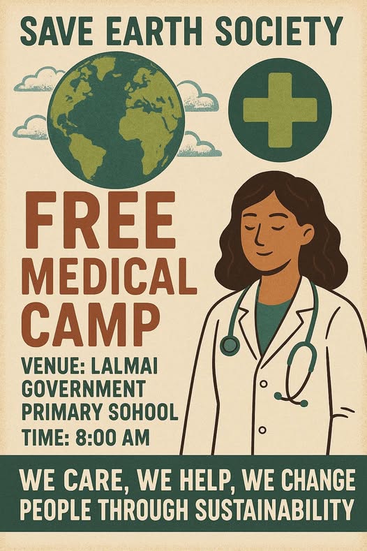 - For rural communities and promote sustainability, the Save Earth Society is proud to host a Free Medical Camp at Lalmai Government Primary School. The event will commence at 8:00 AM and will provide essential healthcare services to underprivileged and underserved members of the community.